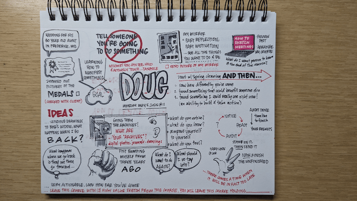 Every Monday at 11am, I get on a call with Doug. I'm usually holding coffee. Sketchbook open. Pen in hand. Often Megan joins us, occasionally its just me. We talk about the business, about clients, about whatever's been rattling around in my head that week. And while we talk, I draw. The same thing I do for clients, Doug does for me. He listens. He asks questions. He catches the thing I said in passing that I didn't realize mattered. I sketch what's coming out of these talks. I’ve spent years helping other people see their thinking. Standing in conference rooms, drawing while teams talk, reflecting back so they can see the shape of it. What seems strange is that doing that for myself is sometimes difficult, or at least challenging. I’m too inside it. Everything feels either obvious or like a tangled mess. I can have a hard time telling which threads are worth pulling and which ones don’t really amount to much. So now I have someone to hold that space for me… Doug. It works because he ISN’T Megan, who as my partner is often too “in it” to mine that good content as well. So we all chat and I sketch while we figure it out together. Most weeks, I don’t know what I want to talk about when the call starts. That used to bother me. I felt like I should come prepared. Have an agenda. Know what I needed to work through. But the not-knowing is actually the point. I’ll start talking about something that happened with a client. Or something I noticed at a conference. Or a frustration I can’t quite name. And Doug just lets me go. He doesn’t try to fix it or rush me toward a conclusion. He just pays attention. Sometimes he’ll ask a question, and I’ll realize I’ve been circling around something for twenty minutes without actually saying it. The question cracks it open. Sometimes he’ll say, “Wait, go back to that XYZ thing you said before.” And we’ll circle back, or circle back again. Sometimes even looking down at my sketchbook and realizing I’ve already drawn it. Then we delve into whatever that topic is further as he helps me develop a narrative around it which turns into a newsletter. Doug’s a creative guy himself, and the combination is really enjoyable. To pull back the curtain a bit: most of these newsletters started as Monday morning rambling. The one about being annoying at parties? That came from me venting about a dinner where I couldn’t stop noticing group dynamics. People talking past each other. Someone getting interrupted and nobody catching it. I wasn’t trying to write anything. I was just processing out loud. Doug said, “There’s something there.” The one about “perfect” clients? That started as me talking about a project that didn’t feel right. We talked through what made working with places like PNNL and ASHA feel so different. What made those projects energizing instead of draining. By the end of the call, I had a sketch and a rough idea. A few days later, it was a newsletter and intentionality about the groups I wanted to work with the most. That’s how it happens. I talk. We explore. I draw. Something emerges. I used to think I should be able to figure everything out alone. (Or at least between Megan and me). I’m the one with the sketchbook. I’m all about listening and synthesizing. I make a living helping people see what might not have been so obvious before. Why would I need someone else to do that for me? But here’s why I do need that. Being good at facilitation doesn’t mean you can facilitate yourself. The tool only works when someone else is holding it. Or when someone else is holding the space while you hold the pen. I’m not thinking out loud and sketchnoting or graphically recording myself. The good news is the client work has gotten sharper because of these Monday morning calls. So have the decisions Megan and I make about where RedTale is headed. Who we want to work with. What we want to say yes (or no) to. How we talk about what we actually do. All of it gets clearer when I’m not trying to think through it alone. Do you already have someone like this in your life? A friend who asks good questions. A colleague who notices things. A coach. Someone who lets you think out loud and doesn’t rush you toward answers. If you do, you probably know how valuable that is. If you don’t, it might be worth finding. Grateful you are here, Wade PS - If you want any other info on how Doug and I work together, shoot me a reply. Happy to connect! |