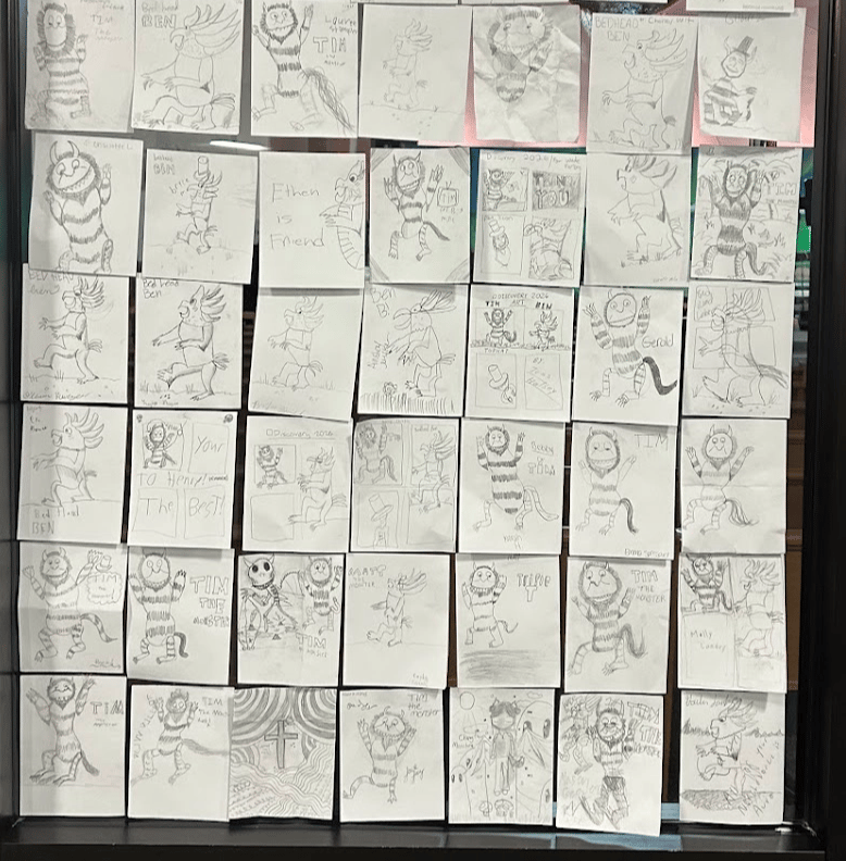 I have a suggestion for a great resource and inspiration for drawing. Maurice Sendak’s Where the Wild Things Are. You remember this book, right? It’s iconic and fun and a little fierce. Kids understand it on a base level, even if they’ve never read (or been read) the book. Though so many have. The monsters are approachable. You can actually learn to draw them. They look cool, but they’re not intimidating to attempt. That combination matters. This weekend, I got to see what happens when you give kids pencils and show them they can draw their own monsters. And I was once again reminded of why combining everything you’ve ever liked doing is so much better than picking just one lane. This Past WeekendOur church had a youth retreat called Discovery. High schoolers develop the curriculum for the weekend, including putting on talks for middle schoolers over two days. It is awesome on many levels. There were some heavier topics like losing faith, questioning God, being angry, scary and painful moments, and how they came back from all that. The theme was “the wilderness.” The whole thing was pretty deep, but in a good way. Singing, some yelling, dancing, emotion everywhere. I was there drawing all weekend, doing graphic recording during the talks, which most of the kids had never seen before. In the middle of all that intensity, I led a drawing session. Thirty to forty minutes of quiet and sit-down time. I used Max and his Wild Thing friends as the prompt and showed the kids they can learn to draw something that looks cool, even if they don’t think of themselves as artists. Kids who had been overstimulated by everything else that weekend got quiet. They picked up pencils. They sat still for almost an hour when some of them can barely sit still for ten minutes in a normal classroom. They made something with their hands while the rest of their brain settled down. What Made It WorkThis worked because it wasn’t just art. It was everything coming together at once, for me. This is where it dawned on me, yet again. I’ve been a summer camp counselor. A special education teacher who knows what overstimulated kids need. A defense contractor. An actor. A welder. A youth worker. A confused & anxious teenager myself, once. I’m a father. An artist. A professional listener. A disruptor. All those experiences prepared me to create what seemed like the exact thing these kids needed in that moment. A quiet space where they could participate without being overwhelmed. Where they could make something with their hands while the rest of their brain settled down. Surprisingly, even helping them feel safe. I drew almost nonstop on Saturday (the only day of the week I typically take off from illustrating something). I didn’t even notice all that I had drawn because everything was flowing together instead of being kept in separate containers. It happened so fast I didn’t realize I was pulling from all of my experiences at once. Until Megan & I did notice and it was a fantastic “aha moment”. So many job descriptions want us to do really specific things, and they only get about 33% of who we are for eight hours a day. What if you could bring 100%? We categorize everything. “Wade is an artist, therefore Wade can only do art”. But what if I’m an artist who also understands youth work and special education and what it takes to help kids who are struggling or and I am trained in active listening and proactive disruption? When those things combine, really cool stuff happens. Your Own Wild ThingsFull transparency: Megan asked me to write this newsletter. Why? because she wants to ask you something, the same thing she asks students at career days or professional development sessions: where in your life can you combine your passions to work the most for you? It doesn’t have to be a church retreat or working with kids or art, like mine. It could be anywhere, when the things you’ve done and the things you love overlap. Maurice Sendak’s monsters work as a drawing exercise because they’re fierce and approachable at the same time. That’s the combination that lets kids engage. Using them in the drawing session worked for me this weekend because it combined all of the things I love doing and feel confident with. Father, teacher, artist, actor, and youth worker, etc all in one room at the same time. Your life has fierce parts and approachable parts. What are the things you’re good at and things you care about? Where are the places where your weird resume actually makes you the perfect person for something specific? These kids got quiet and made their own monsters because someone brought all the wild things he’d ever done into one room and made something useful out of it. Now that someone is challenging you to do the same. Grateful you are here, Wade PS - I also do this with big groups (of adults!). Let’s talk about how to make that happen. Get in touch with me here |